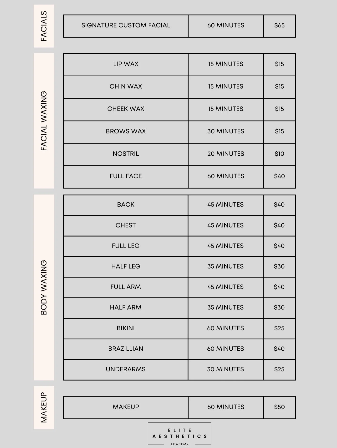 All services in Elite Aesthetics Academy are performed by supervised students.